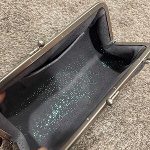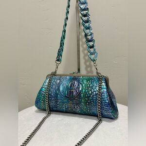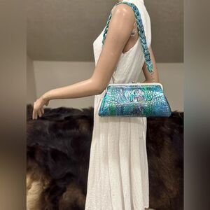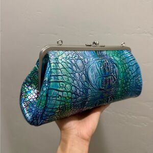 One of a kind! Uniquely beautiful leather purse. Handmade from Iridescent cowhide leather with embossed crocodile pattern. Exquisite kisslock metal frame design.
