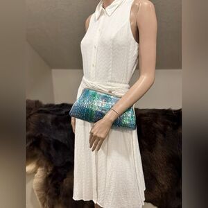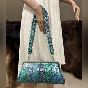 Iridescent Croc-Embossed Leather Handmade Kisslock Baguette Bag/Multi Use Style