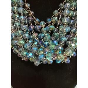 Iridescent Crystal Glass Bead Necklace Blue Green Tarnished Silver Metal Retro