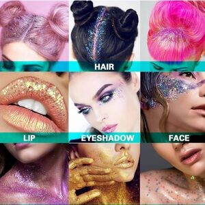 Shine bright with 's iridescent face and body glitter. Perfect for parties and festivals, this glitter adds a dazzling touch to your look.