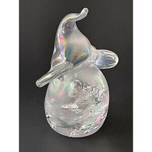 Iridescent GLASS ELEPHANT Figurine Paperweight Trunk Up