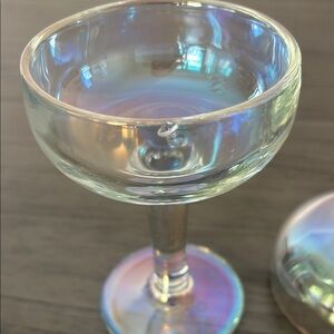 Set of two iridescent glass coupe glasses. Perfect for cocktails or champagne.