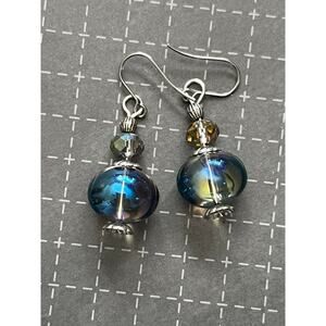 Iridescent Glass Dangle Handmade Earrings Futuristic Classic Unique