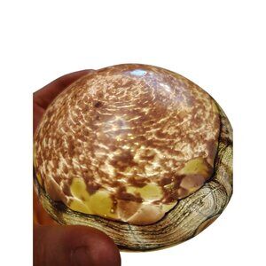 Enhance your space with this whimsical iridescent glass mushroom light. Features a captivating brown gold swirl design and USB cord. Perfect for adding a magical touch to any room. It measures 5" in height. Please see all photographs as they are part of the description. Shipped with USPS Ground Mail.