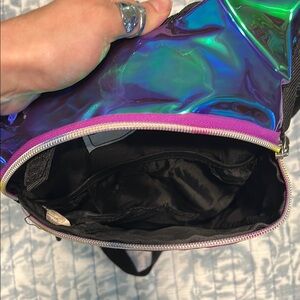 Vibrant iridescent hydration backpack.