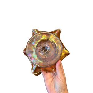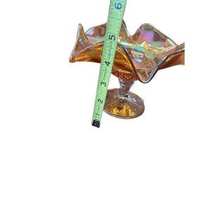 Iridescent Marigold Compote Glass Ruffled Edge Candy/nut Dish 5 in H Pedestal