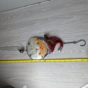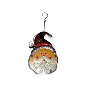 EUC like new, iridescent metal & glass red & white hanging Santa Claus decoration.