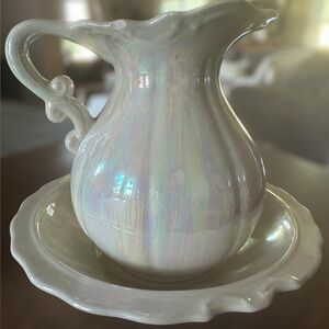 Iridescent Pitcher & Bowl Set Royal Haeger Style Cottagecore Retroglam Accent