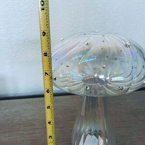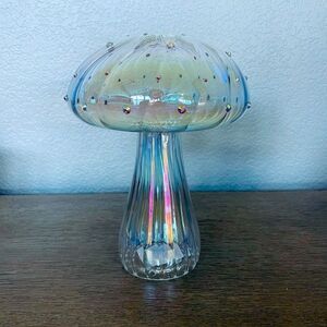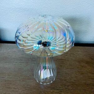 NWT hollow rainbow glass crystal textured iridescent mushroom decor figure statue.