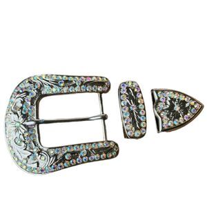 Iridescent Rhinestone Belt Buckle Set 3 Piece Western Cowgirl Bling