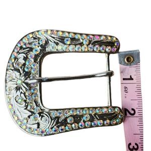 Belt Buckle Set 3 Piece Western Cowgirl Unbranded Bling Iridescent Rhinestones