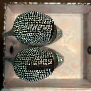 Iridescent Rhinestone Stacked Heels