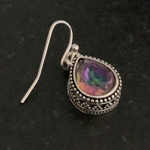 Iridescent Teardrop Earrings, Prism Glass Crystal, Vintage Boho Balinese Style