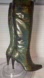 Iridescent chameleon metallic olive pointy toe shiny knee high heeled boots 38