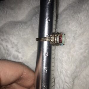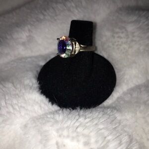 Iridescent crystal set in sterling silver ring with whale tail bezel
