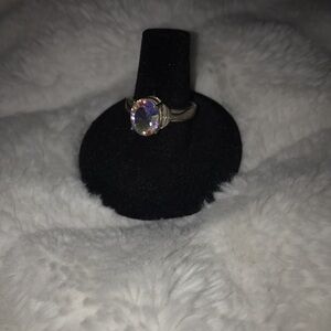 Iridescent crystal set in sterling silver ring with whale tail bezel
