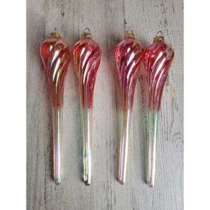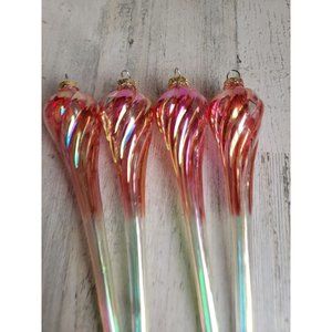 Iridescent long Red Twisted glass ornament Xmas set