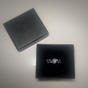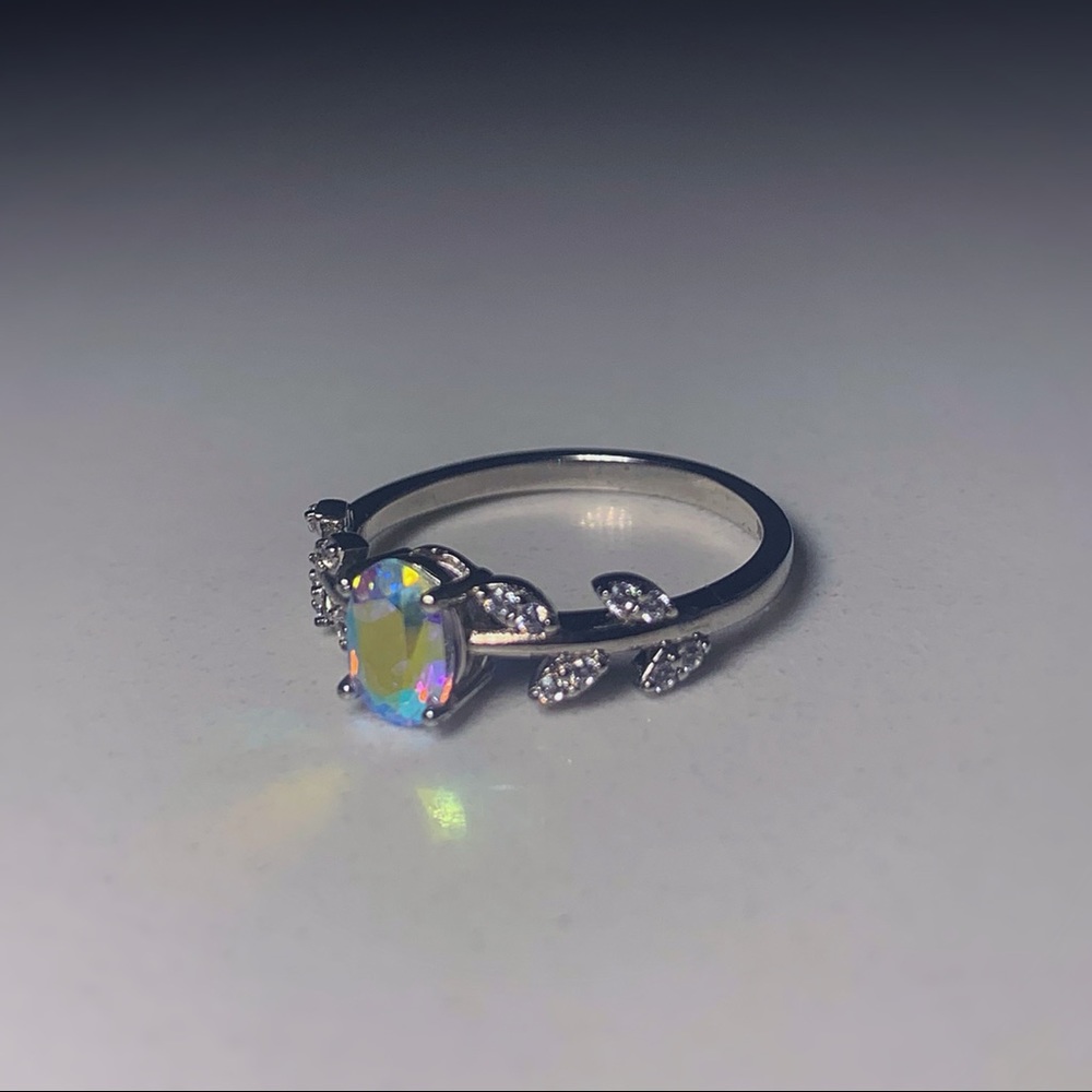 Iridescent ring with crystal feather design. Brand new, never worn.