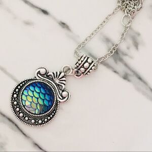 Iridescent Blue Green Mermaid Fish Scale Looking Design Silver Tone Pendant Necklace is a brand new item