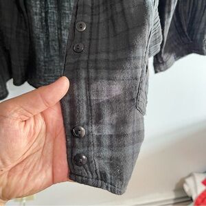 Iridium Gray plaid button down shirt preowned Small lagenlook