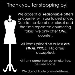 Condition: Great condition with no known flaws. All items are from a smoke-free, pet-free home.