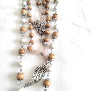 3 Silver & Wood Bead Layered Pendant Statement Necklaces