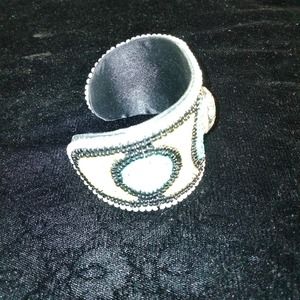 Beaded Turquoise, Yellow, Black, Coral & Pearl Embellished Cuff Bracelet