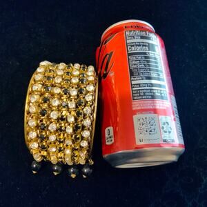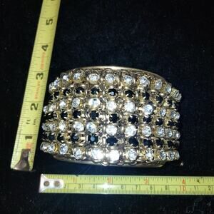 Black & Clear Rhinestone Gold Toned Cuff Bracelet