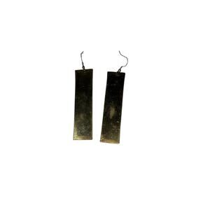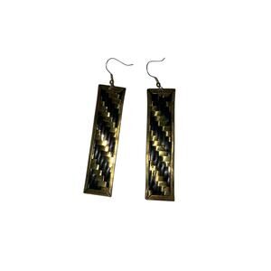 Iris Apfel & Bajalia Black Gold Woven Rectangle Drop Earrings Statement Boho