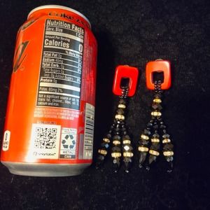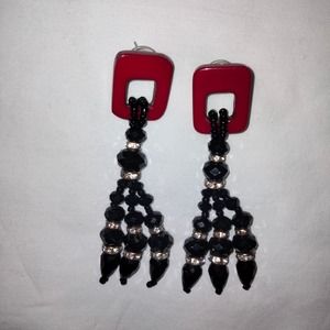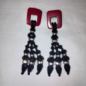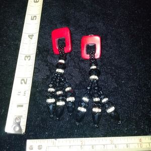 Black, Red & Clear Rhinestone Tasseled Statement Earrings