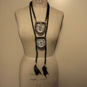 Iris Apfel & Bajalia Black-Clear Rhinestone Feathered Beaded 2 Layer Necklace
