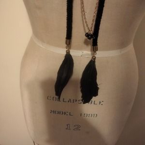 Iris Apfel & Bajalia Black-Clear Rhinestone Feathered Beaded Statement Necklace