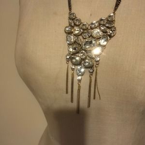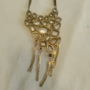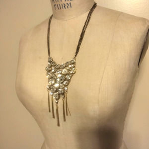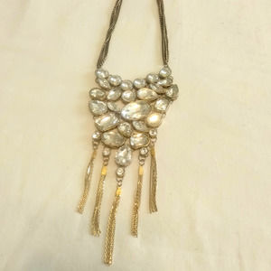 Iris Apfel & Bajalia Clear Rhinestone Gold Toned Statement Necklace