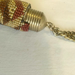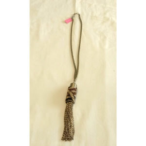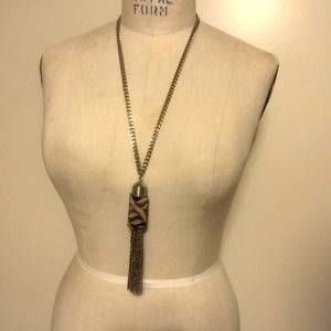 Gold Brown Rust Metal Beaded Tassel Statement Necklace