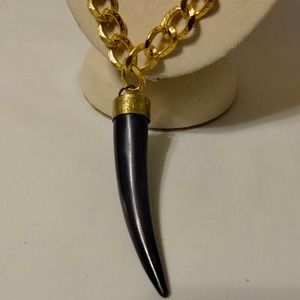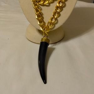 Gold Chain & Bone Horn Pendent Statement Necklace