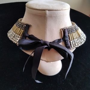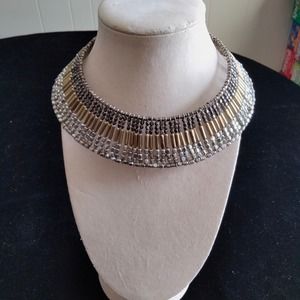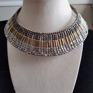 Iris Apfel & Bajalia Tri-color Metal Beaded Chunky Collar Statement Necklace