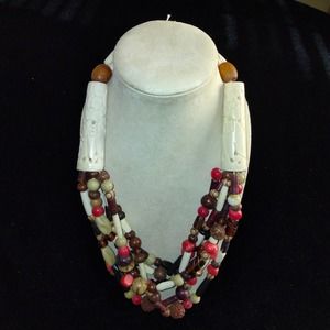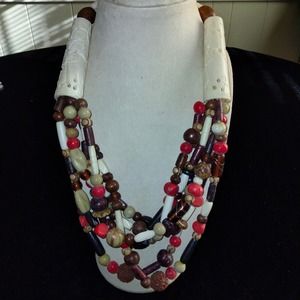 Wood, Bone and Resin Multicolored Beaded Statement Necklace