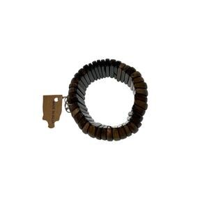 This is a new old stock Iris Apfel & Bajalia wooden segmented stretch bracelet.