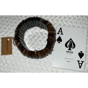 Iris Apfel & Bajalia Wooden Segmented Stretch Bracelet Boho Tribal Statement