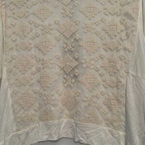 Iris Basic Textured Blouse Scoop Neck Long Sleeve Sweater White W Large NWT