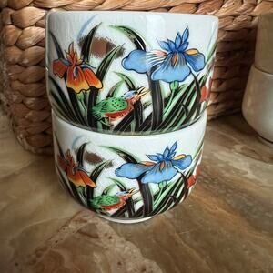 MCI Vintag Japan TEA/Sake Cups Theme Flowers Bird Iris Set of 4