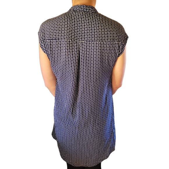 Iris Black White Geometric Mini Dress Sz 0 Crepe Textured Shift Career Minimal