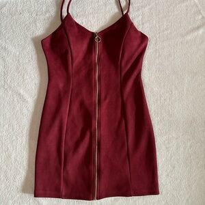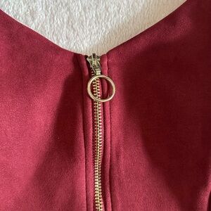 Iris Burgundy mini bodycon dress with zipper detail. Built in bra. Suede feel