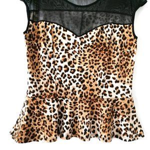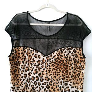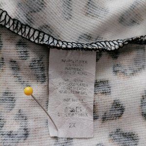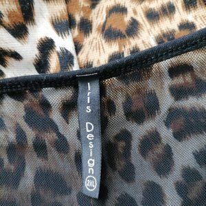 Iris Design Beige Round Neck Short Sleeve Leopard Print Blouse Top Size 2XL