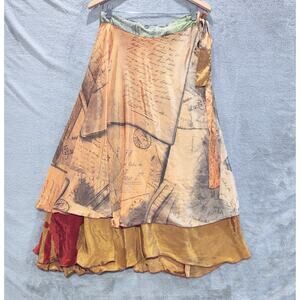 Iris Impressions Tiered Silk Blend Wrap Skirt Size Large Flowy Fairy Romantic