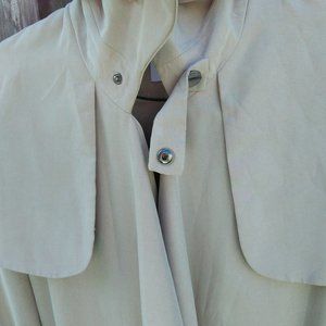 Snap-fastening cuffs, belt loops, self-tie belt, faux front flap pockets, storm flap, fully lined