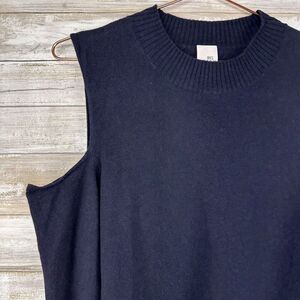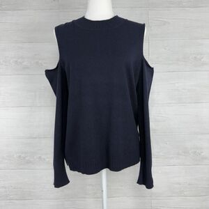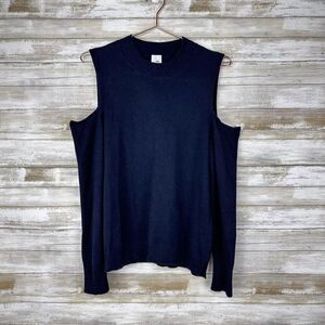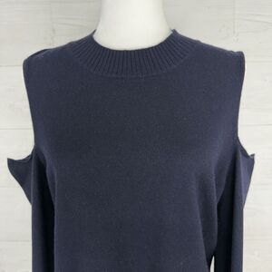 Iris & Ink Diana 100% Cashmere Sweater Jumper Women L Cold Shoulder Navy Blue