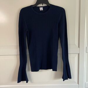 Iris & Ink Ribbed Bell Sleeves navy blue sweater 30660.
