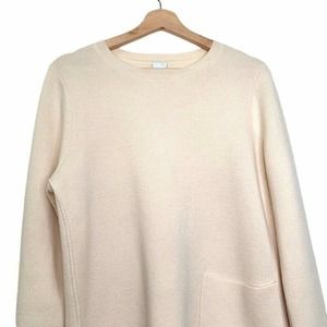 Iris & Ink Womens Pullover Sweater White Long Sleeve Crew Neck Pocket Wool M