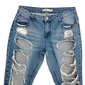 Iris Jeans Los Angeles Distressed Medium Blue Wash Size 9 100% Cotton **Damaged*